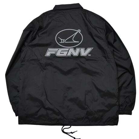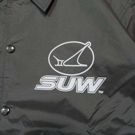 SUW WEARとFORGET NEVERのコラボロゴが大胆に配されたコーチジャケット。