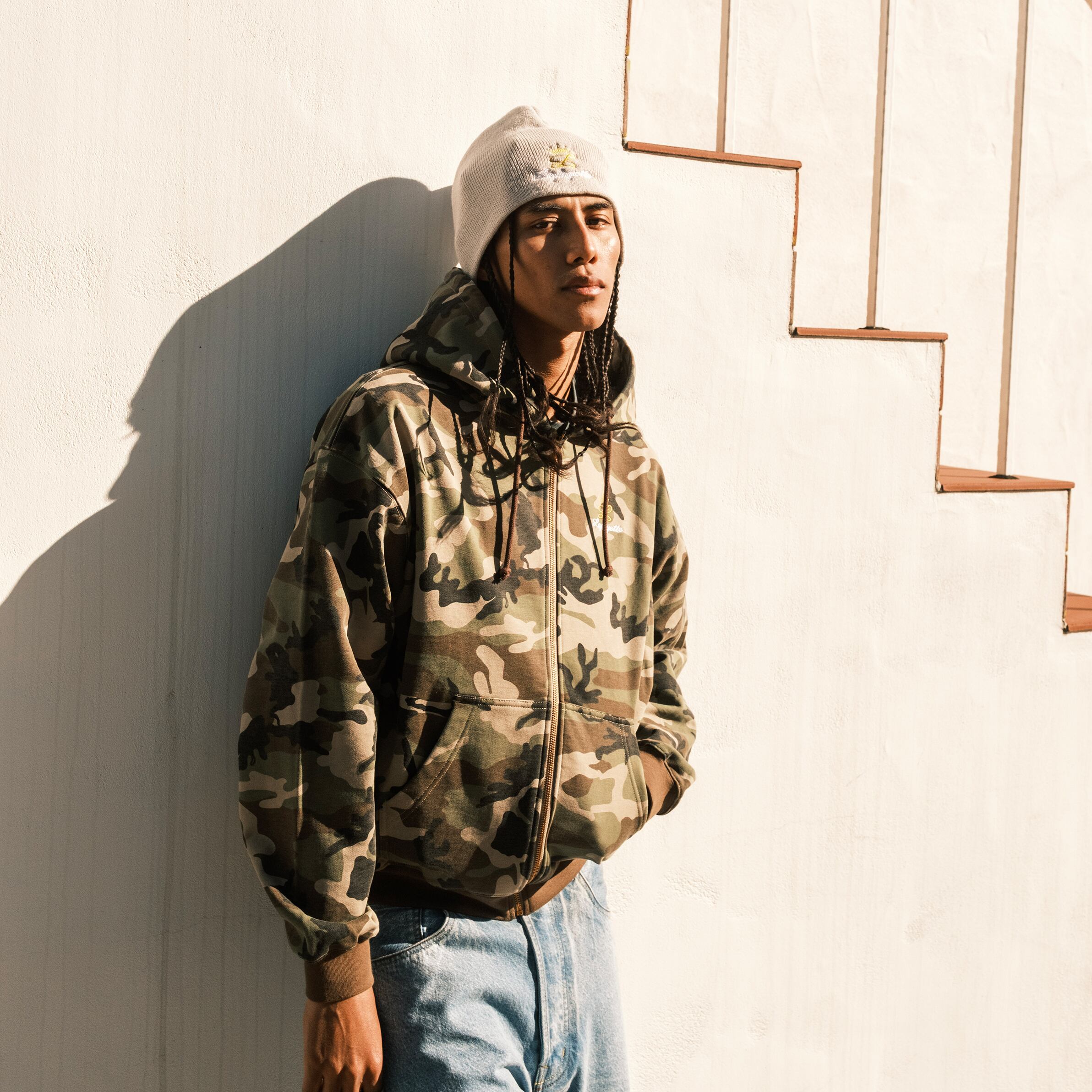 ナチュラルな風合いでプリントしたWOODLAND CAMOの3色展開。