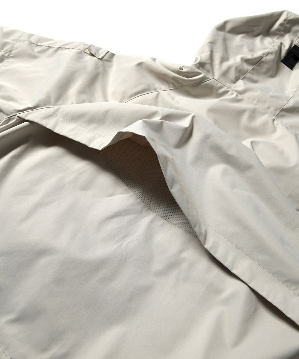 ドライな質感と光沢を抑えたマットなポリエステルシェル、裏地にはメッシュライナーを使用。