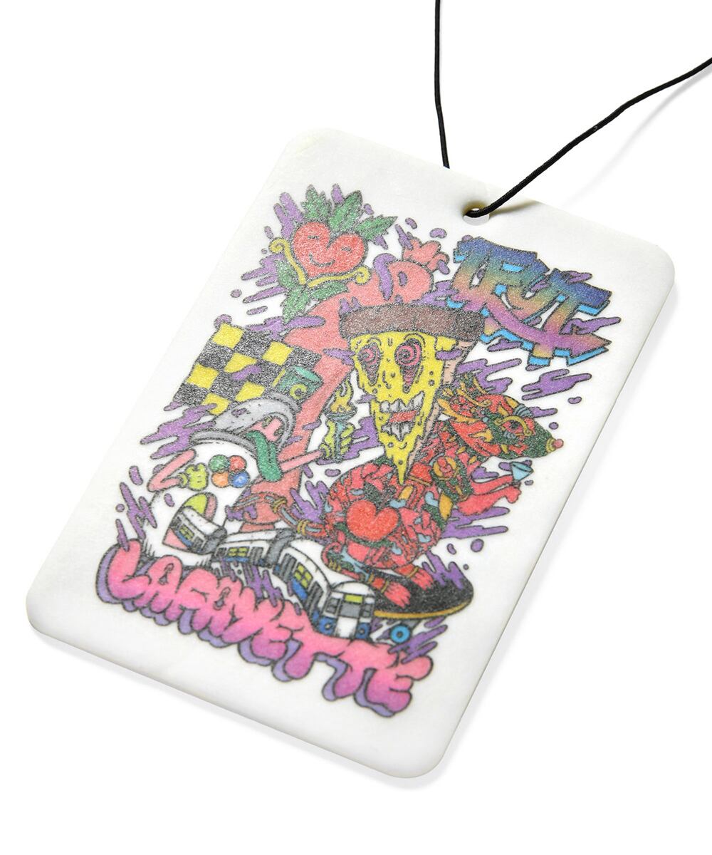 スケートボードに乗ったネズミやピザ、メトロ、グラフィティーアートなどNYカルチャーを盛り込んだ「Fritilldea」によるアートデザインをプリントしたエアーフレッシュナー。