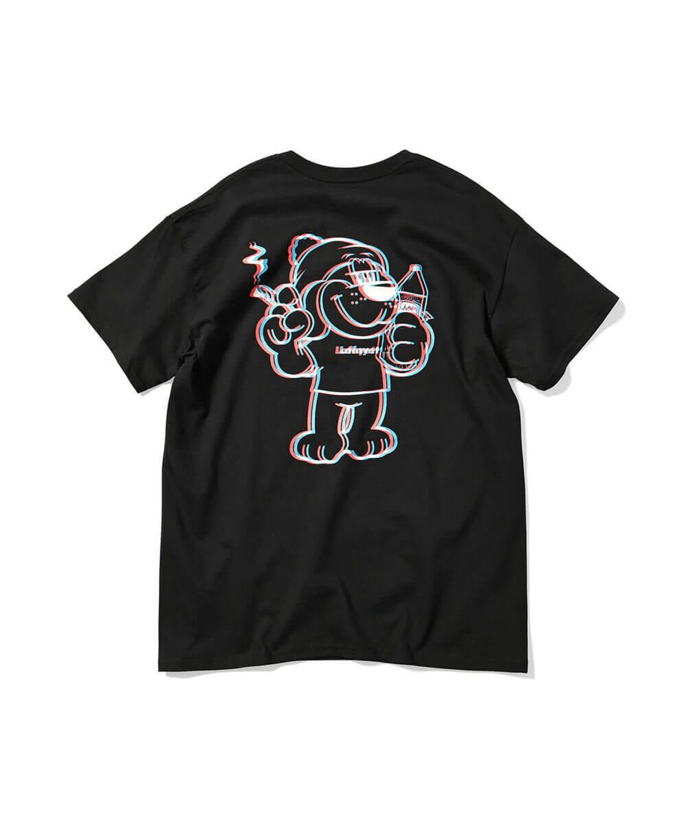 ビール片手にリラックスした表情の犬のキャラクターのTシャツ。